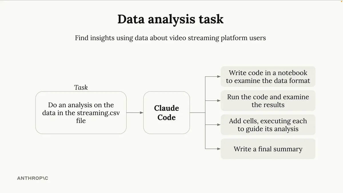 我将展示几个通过Claude代码完成的任务案例。每个案例中,它都会以相当智能的方式运用这套工具。至少有一个任务中,我还会为Claude额外提供一组新工具来使用。这个过程不仅能直观展示Claude代码开箱即用的能力,更希望能让您看到扩展Claude代码功能是多么轻松。
