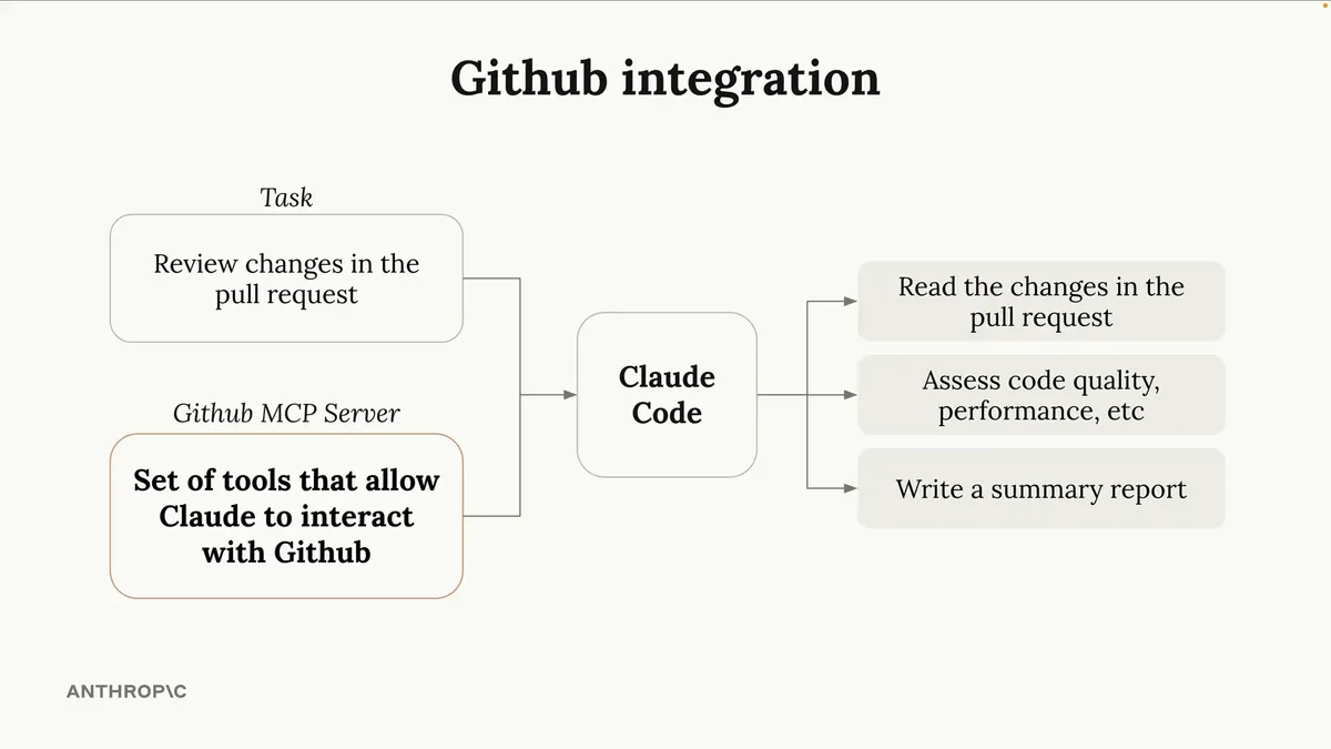 当Claude Code在GitHub上运行时,不仅能查看和运行您的代码,还能使用一系列与GitHub交互的新工具,例如创建评论、提交代码或拉取请求等。您可利用此集成功能自动审查拉取请求。